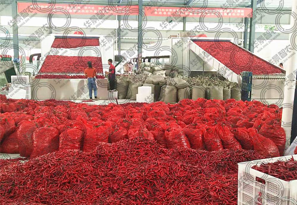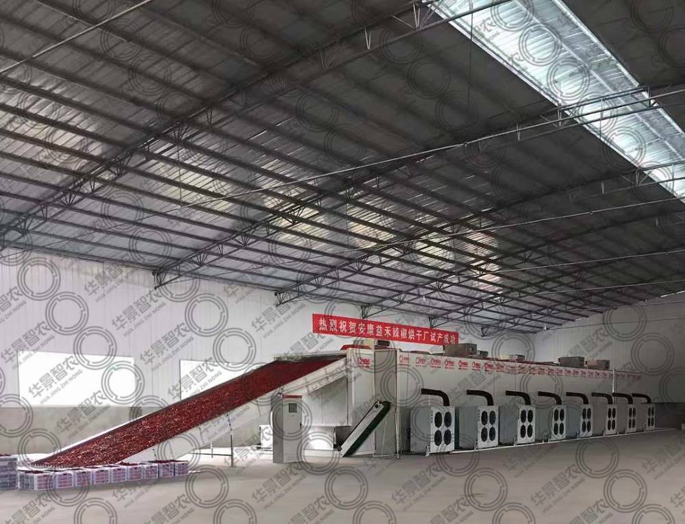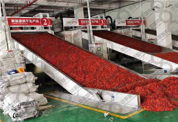 四川華景智農(nóng)-貴三紅定制款新能源辣椒烘干生產(chǎn)線烘干現(xiàn)場(chǎng)